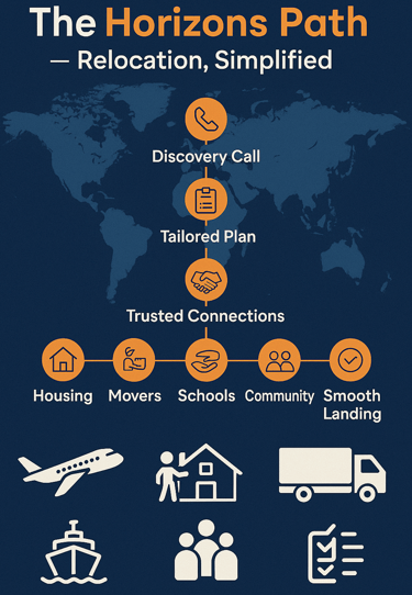 Instead of overwhelming you with forms, timelines, and endless details, The Horizons Path is designed to bring clarity, stability, and peace of mind. From the very first call, you’re guided step-by-step with personalized support, ensuring that your relocation is not just about moving belongings—it’s about embracing a new chapter with confidence and excitement, knowing you have a trusted partner walking beside you.